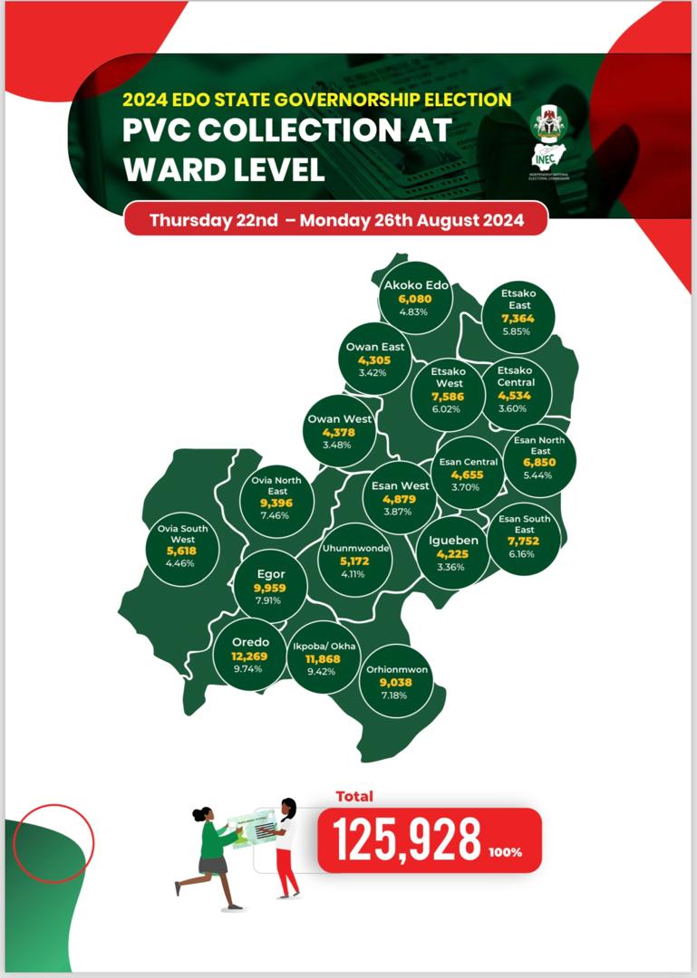 Ahead of the forthcoming Edo State governorship election, the Independent National Electoral Commission (INEC) has recorded what is described as the highest percentage of collection of Permanent Voter...